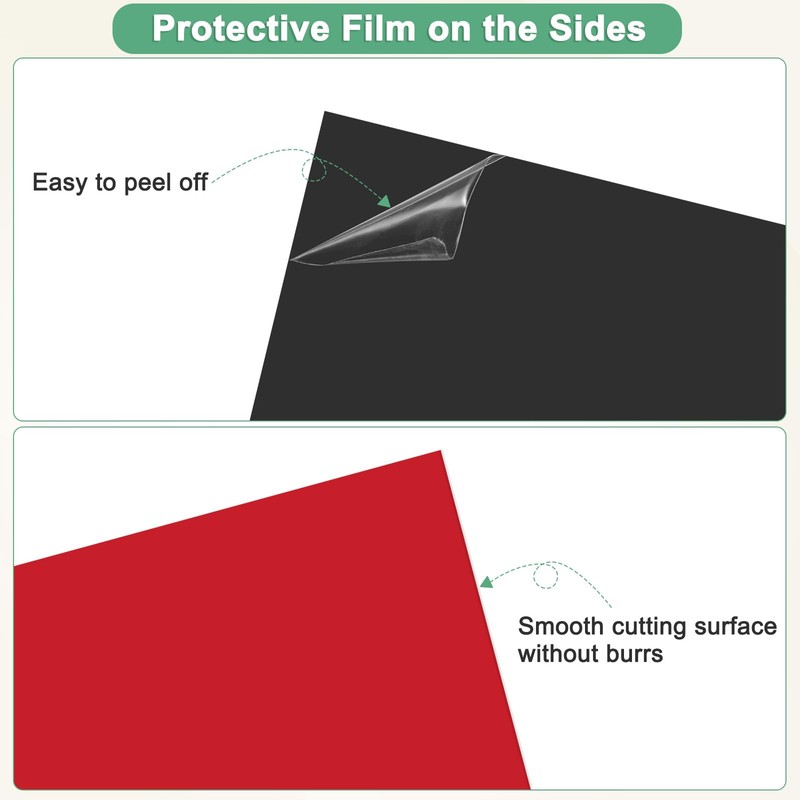 - [Installation] - Each two-color laser engraving board is equipped with a transparent plastic film to prevent scratches during transportation. Before use, you only need to tear off the upper protective film, laser machines quickly remove the top layer without contact or post-processing