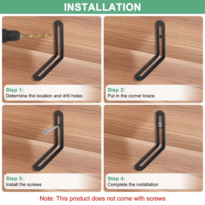 - [Multipurpose Use] - Adjustable L-Shape brackets are used for structural support projects to reinforce your shelves, bookshelves, chairs, tables, beds or other right-angle shelves. Easily installed in your kitchen, living room, bedroom, bathroom, office, and dining room