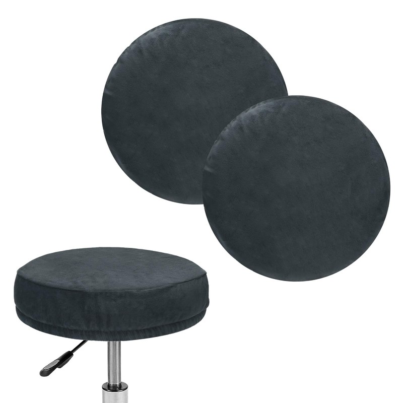 M METERXITY 2-Pack Bar Stool Covers Round, for 12-14 Inch Velvet Washable Stool Cushion Slipcover with Elastic Bands for Bar Stool/Round Cushion [Gray]