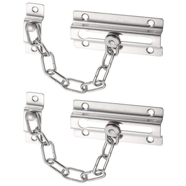 M METERXITY 2-Pack Door Chain Lock, Premium Security Door Chain Guard Square Sturdy & Rust-Resistant Stainless Steel for Inside Door/Windows, Heavy Duty Child Safety Lock [Silver]