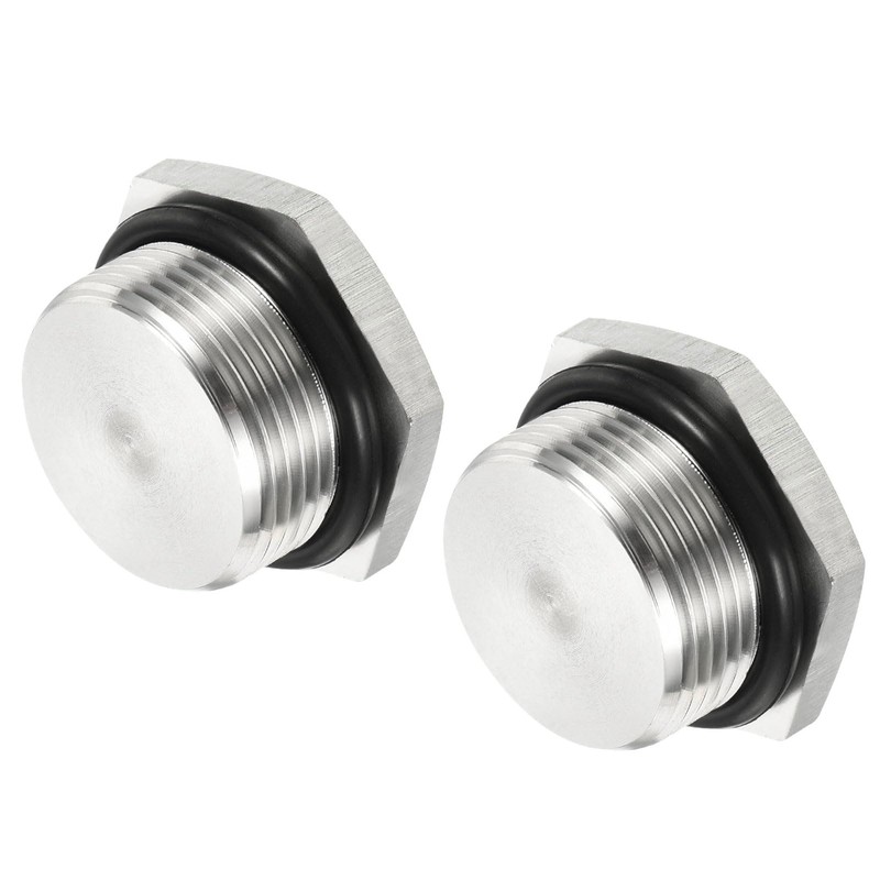 M METERXITY 2 Pack Male Plug - Thread Hexagon Head Socket Solid Pipe Fitting with Sealing Rubber Ring, Anti-Rust, Apply to Water Pipe (M25x1.5, Silver Tone)