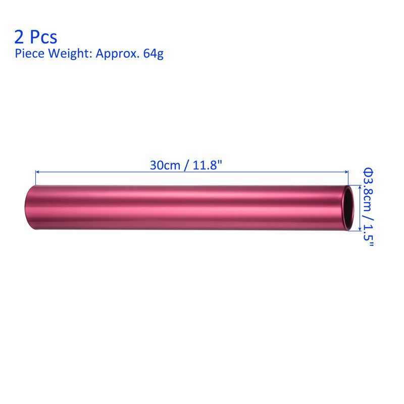 2 Pack of Relay Stick, which length is 30cm / 11.8 inch; Surface Finish: Oxidation Plating; Piece Weight: Approx. 64g; Outer Diameter: 3.8cm / 1.5 inch. The color is red.
