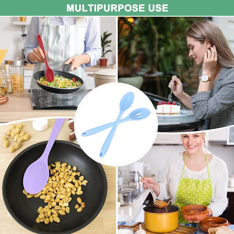 - [Multipurpose Use] - The silicone cooking spoon is a practical tool for stirring, mixing, dividing, tasting, turning, and serving foods. You can use it to stews, scoop up coffee, tea, salads, sauces, spoon sugar, salt, honey, flour, hot soup, spices, and more, suitable for restaurants, kitchens, dining rooms, hotels, outdoor picnics, more occasions