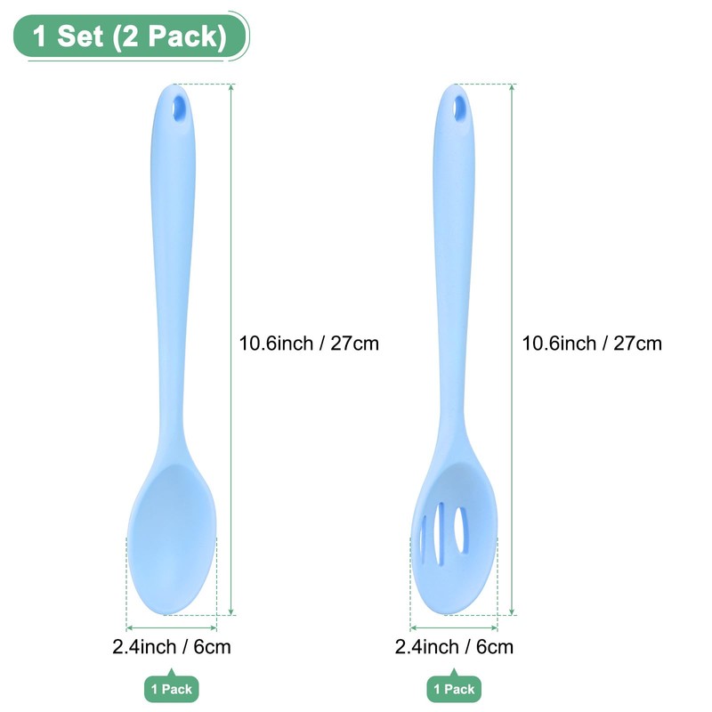 - [Size & Package] - The silicone basting spoon is approx 27 x 6 cm/ 10.6 x 2.4 inch, The set includes a solid spoon and a slotted spoon, the solid spoon is perfect for stirring and scooping, while the slotted spoon is great for straining and serving