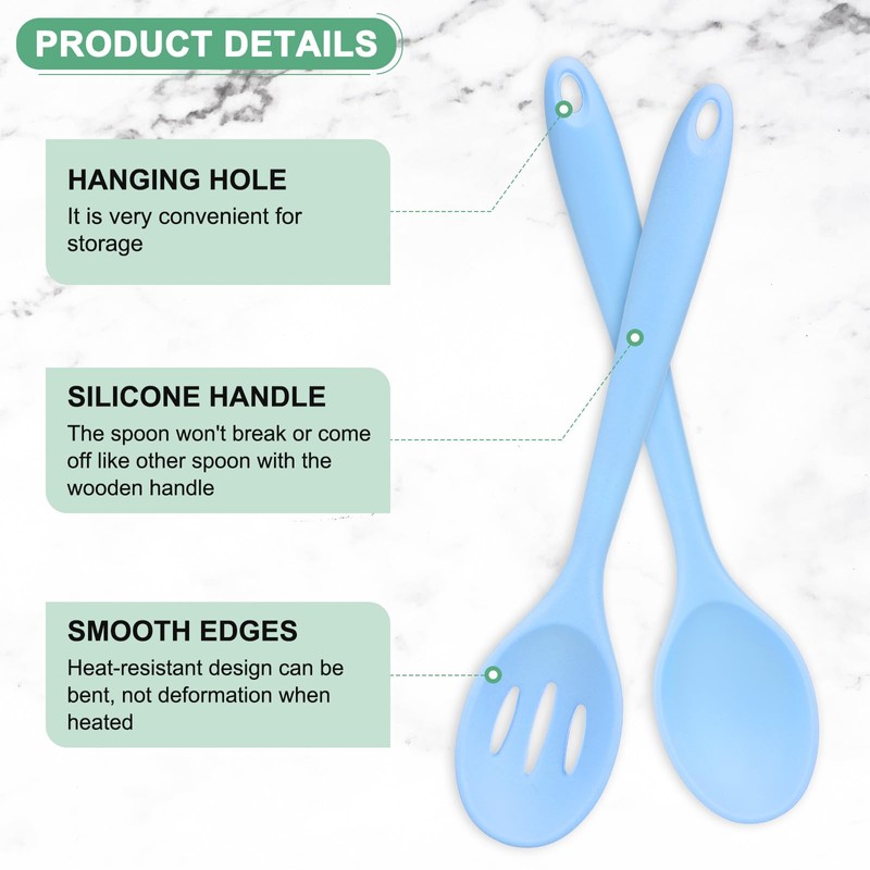 M METERXITY 2-Pack Silicone Spoons for Cooking, 10.6" Mixing Nonstick Slotted and Solid Serving Spoons Heat Resistant Utensils Spoons for Kitchen/Cooking/Baking/Stirring Mixing Tools [Blue]
