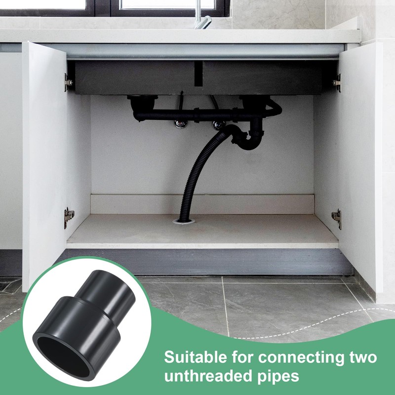 - [Size & Package] - 2-Pack x UPVC Connectors; Specification: 1-1/2"x1"; Color: Grey; Small inside diameter: 1.31 in/ 33.4 mm; Large inside diameter: 1.9 in/ 48.25 mm; Small Side Thickness: 0.19 in/ 4.72 mm; Large Side Thickness: 0.2 in/ 5.13 mm; Height: 2.87 in/ 73 mm