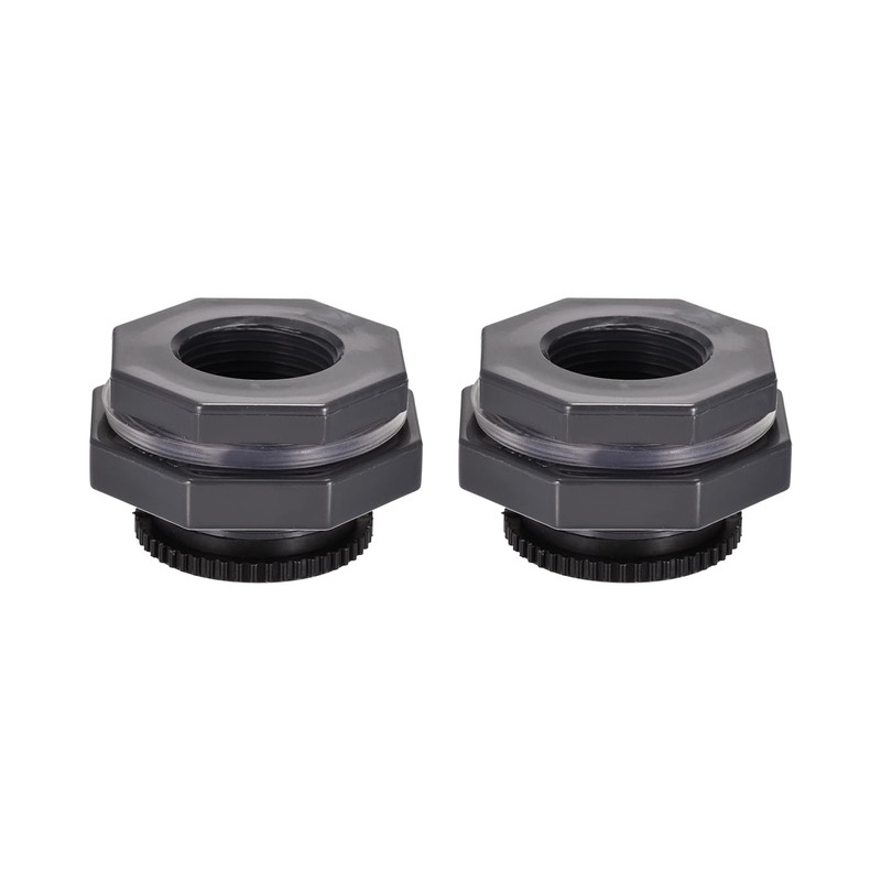 M METERXITY 2 Sets PVC Bulkhead Fitting Thread Bulkhead Water Tank Connector with Plug Fitting for Aquarium Rain Bucket G1 Thread Gray
