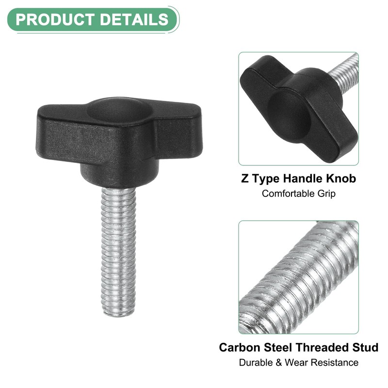 - [Advantages] - This hand tightening thread thumbscrew can securely connect the parts and is easy to install. Z shape knobs offer ease of grip and turning by hand, providing leverage and comfort for effortless tightening or loosening