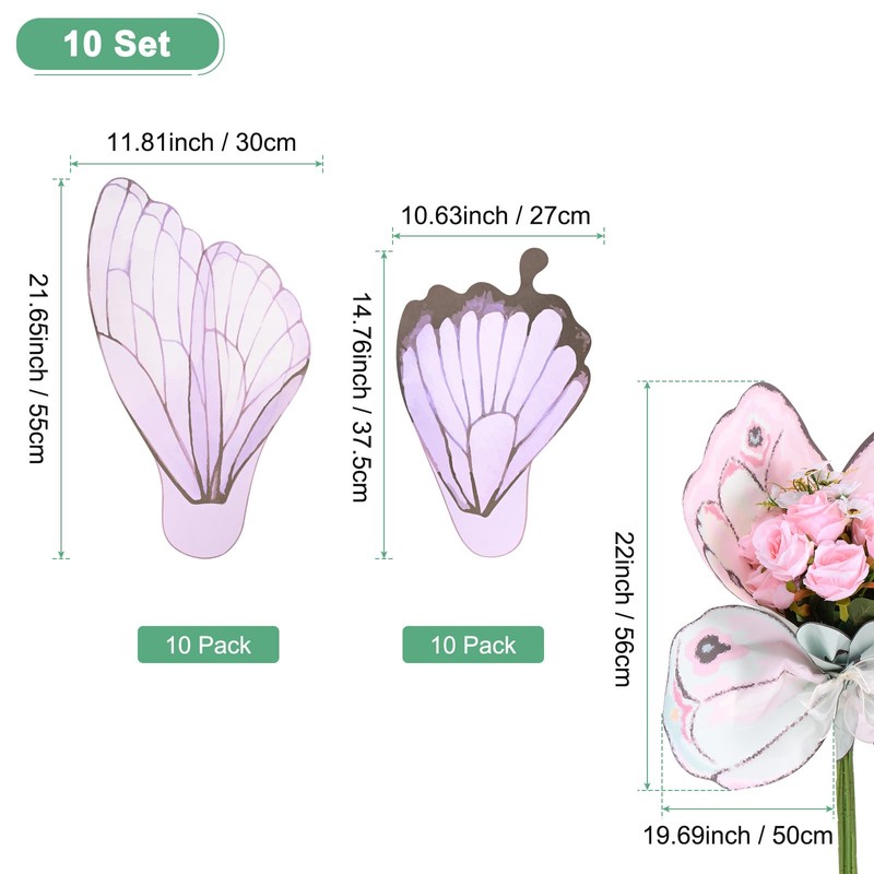 M METERXITY 20 Sheets Butterfly Flower Wrapping Paper Bouquet, 20 x 22 Inch Purple Waterproof Floral Wrapping Paper Flower Packaging DIY for Wedding/Party/Birthday/Gift Bouquet Wrap Paper
