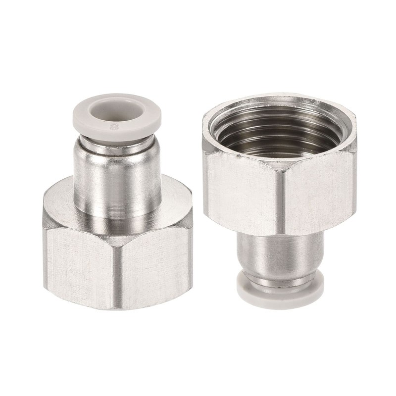 M METERXITY 2pcs 1/2PT Female Thread Pipe Fitting Nickel Plated Copper Straight Union Push Connection Fitting for Pneumatic Systems 8mm Silver