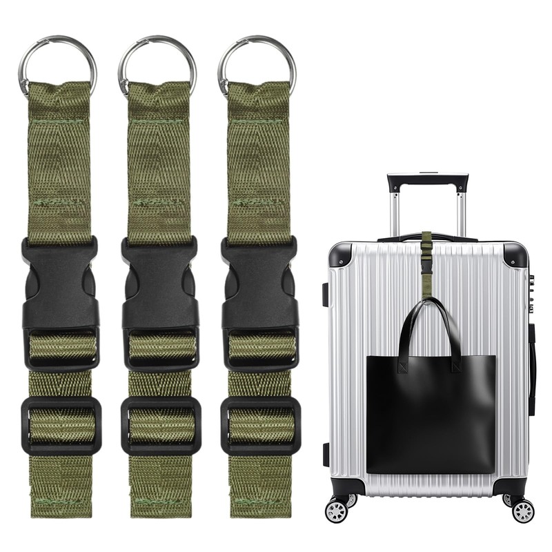 M METERXITY 3-Pack Add A Bag Luggage Strap, Adjustable Suitcase Belt for Connecting Handbag/Backpack/Jacket, Luggage Connector [Dark Green]