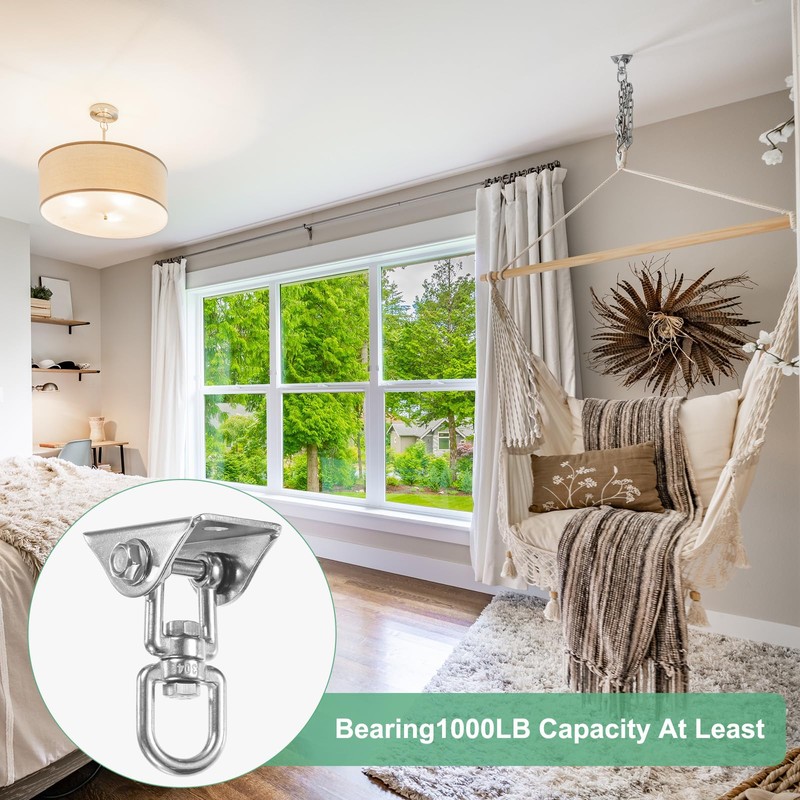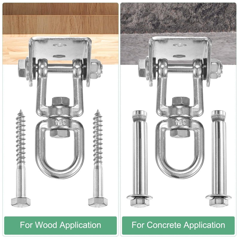 M METERXITY 360° Swivel Swing Hangers, 1200 LB Capacity Stainless Steel Hammock Hanging Kit Swing Hook for Ceiling/Chair/Yoga/Punching Bag/Gym/Playground, Ceiling Mount Swing Bracket [Silver]