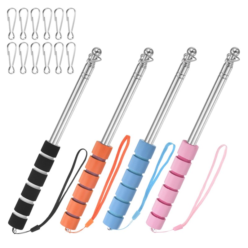 - [Size & Package] - Our extendable pole set includes a 4-pack black/orange/blue/pink flagpole with 12 pieces of clips, it also comes with a tail lanyard of the same color. The thoughtful tail lanyard design can help you hang it on your wrist or other items and prevent it from falling off, Pipe diameter:7-12mm