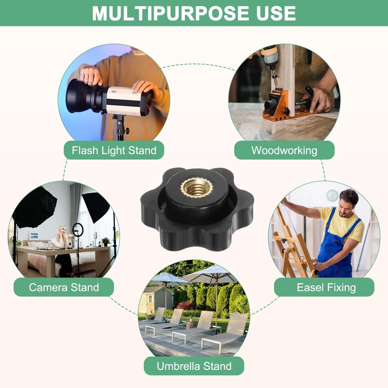 - [Multipurpose Use] - These female star knobs are good for various applications requiring quick adjustments, such as woodworking, machinery, equipment assembly, lathes, drill presses, sawing machines, packaging, printing equipment, computer monitors, light fixtures, and patio umbrella brackets, etc