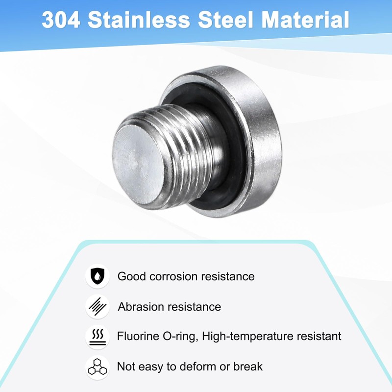 - [Size & Package] - The size of the sealing screw is 14 x 12mm / 0.55 x 0.47" (Dia x H), the thread length is 7.5mm / 0.3", and the thread specification is 1/8 NPT. The package contains 4 pieces of hexagon socket plugs