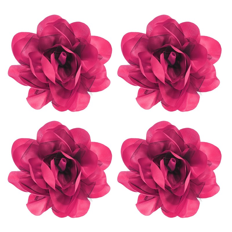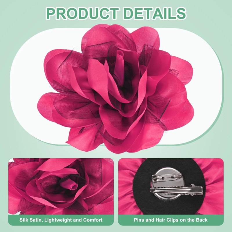 - [Size & Package] - 4Pcs x Big Silk Satin Flower Brooches; Material: Silk Satin, Iron; Color: Rose Pink; Flower Size: 14 x 14 cm / 5.5 x 5.5 Inch
