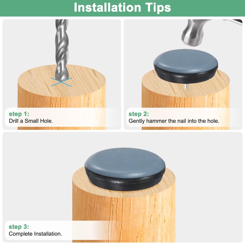- [Installation] - Please drill the guide holes before installation to prevent the nails from bending or the furniture feet from cracking, and then tap gently to make the furniture foot pads completely knock into the holes.