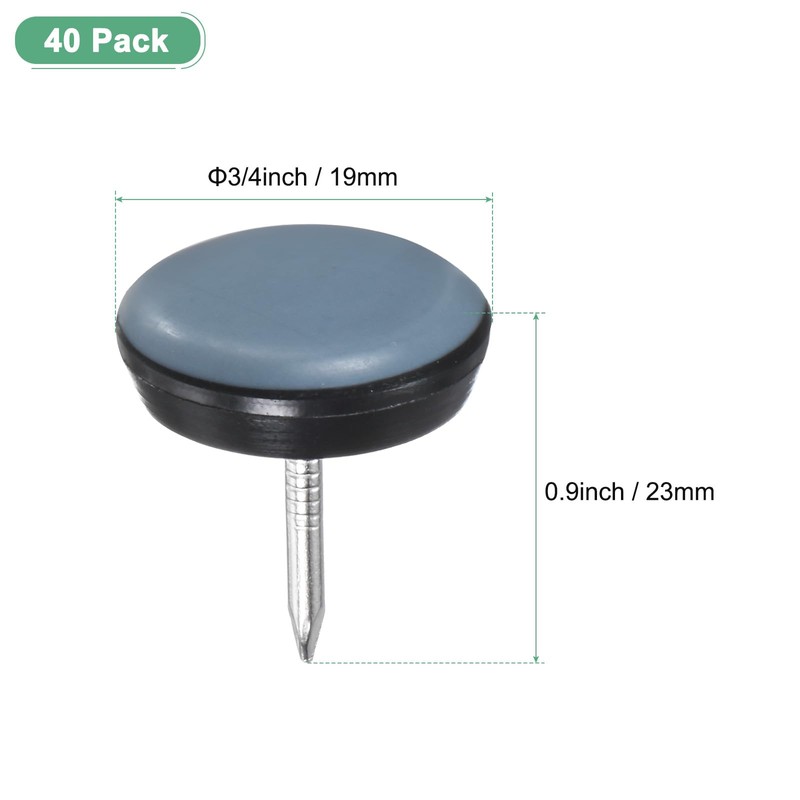 M METERXITY 40-Pack Nail on Furniture Sliders, 0.75" (19mm) PTFE Chair Sliders Glides Round Pads for Chair/Table, Furniture Movers Leg Floor Protectors [Grey]
