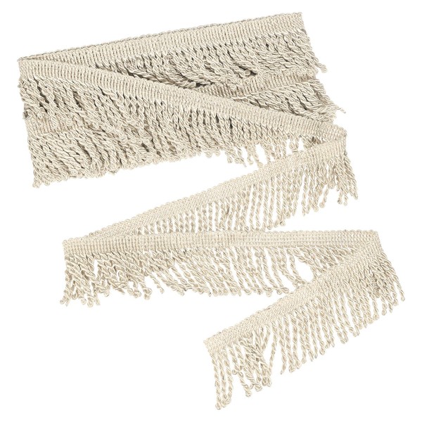 M METERXITY 5 Yards Curtain Fringes Fringe Trim, 2.4" Wide Polyester Fringe Boho Lace Sewing Fringe Trimming Tassel Fringe Trim for Bags/DIY Decoration/Skirt/Sofa/Clothes [Beige]
