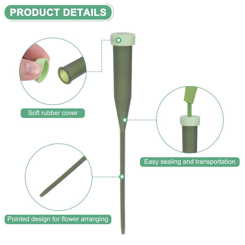 - [Functional Desgin] - The flower stem water tubes are designed with pointed heads, providing you with simple operation, so you can easily insert them into the soil or foam. The water tubes come with rubber caps, which can effectively prevent water from overflowing.