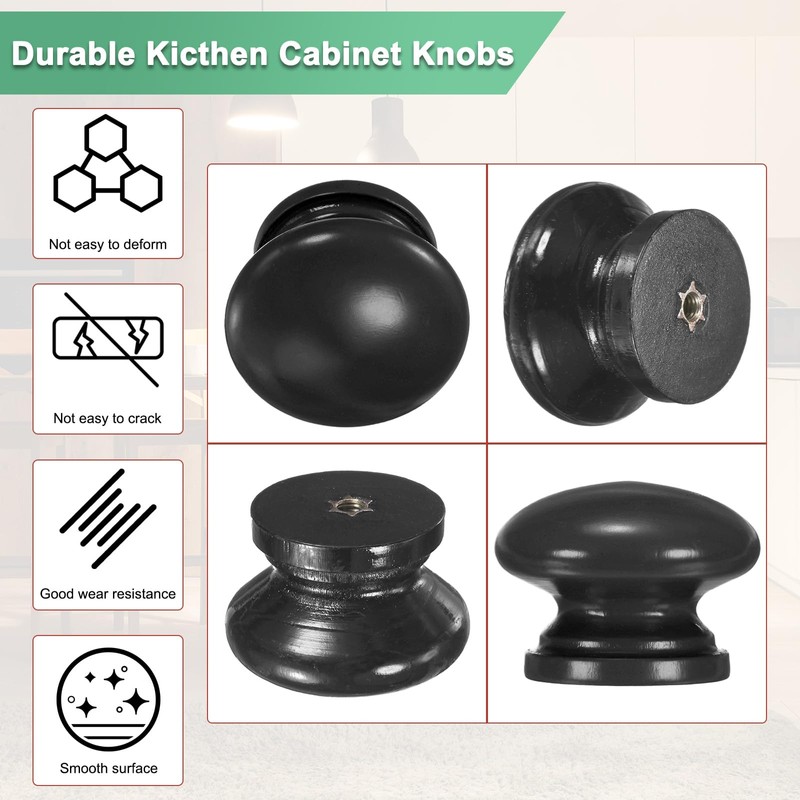 M METERXITY 6-Pack Kicthen Cabinet Knobs, 1-3/8 in(35mm) Solid Wood Round Drawer Pull Handle for Dresser/Office/Cupboard, Drawer Knob Hardware [Black]