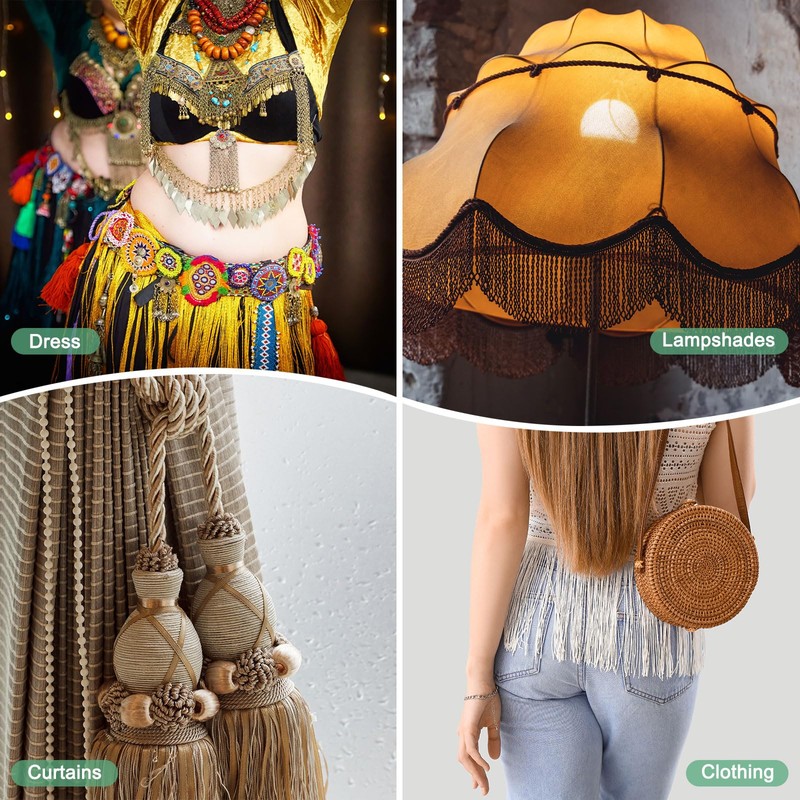 - [Multipurpose Use] - The Chainette fringe trim is very suitable for DIY clothing and decoration, such as dance costumes, dresses, underwear, handbags, lampshades, curtains, bed sheets, and crafts, very suitable for various styles of design, showing a unique match in weddings, party decorations, uniforms