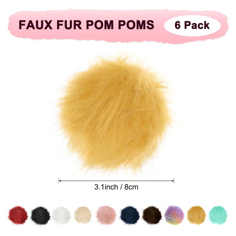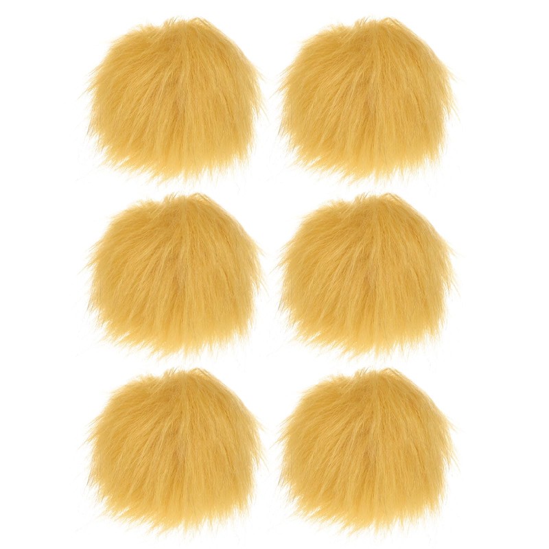 M METERXITY Pompons aus Kunstfell, 3,1 cm, weich, flauschig, mit elastischer Schlaufe, für Hüte, Taschen, Schlüsselanhänger, Strickzubehör, Bastelarbeiten, Ingwergelb, 6 Stück