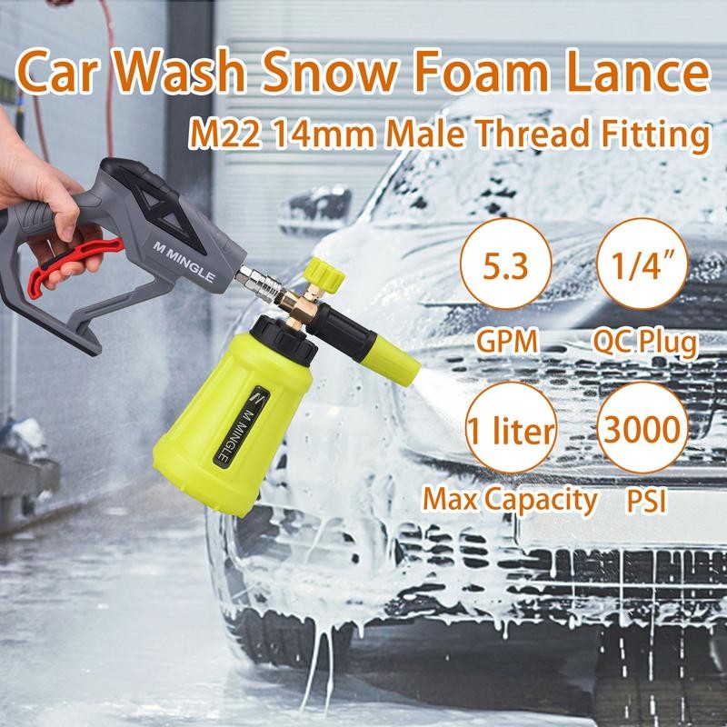 M MINGLE High Pressure Washer Handheld Water Spray Snow Foam Lance, 4000 PSI Cannon Foam Blaster Power Washer with 1/4" Quick Connector, Car Wash Foam Cannon Kit with 5 Pressure Washer Nozzle Tips, 1 Liter - Size: Foam Cannon