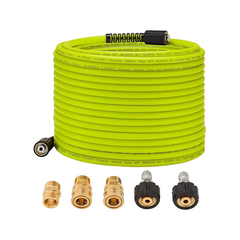 M MINGLE Pressure Washer Hose 50 FT x 1/4" - Replacement Power Wash Hose with Quick Connect Kits - High Pressure Hose with M22 14mm Fittings - 3600PSI