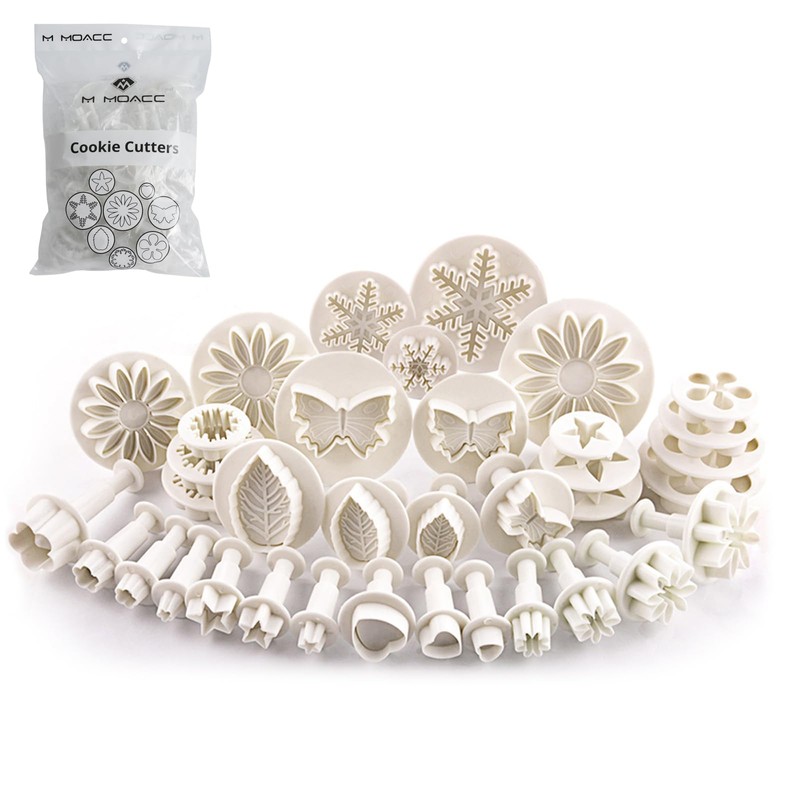 M MOACC M MOACC Cake Tools 36 Piece Fondant Cake Cookie Plunger Sugarcraft Flower Leaf Butterfly Heart Shape Decorating Mold DIY Icing Plunger Tools
