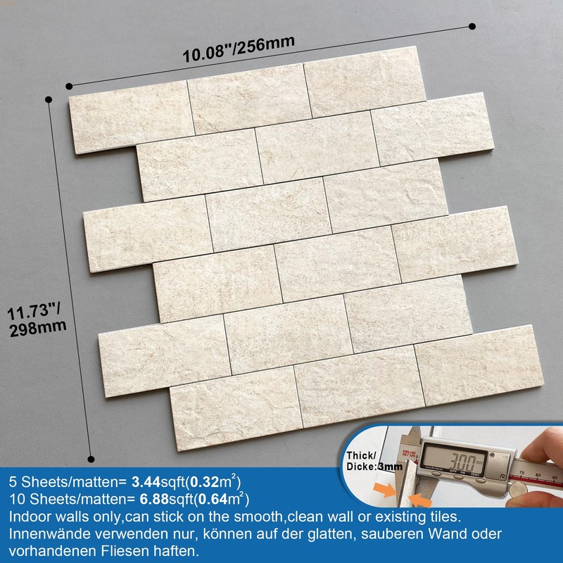 - Marble Subway Tile Backsplash: M MOFIT matte stone look stick on tiles,seamless design with a realistic marble look. Simple color matching makes this wall sticker suitable for living room and bathroom backsplash to make your space clean and elegant