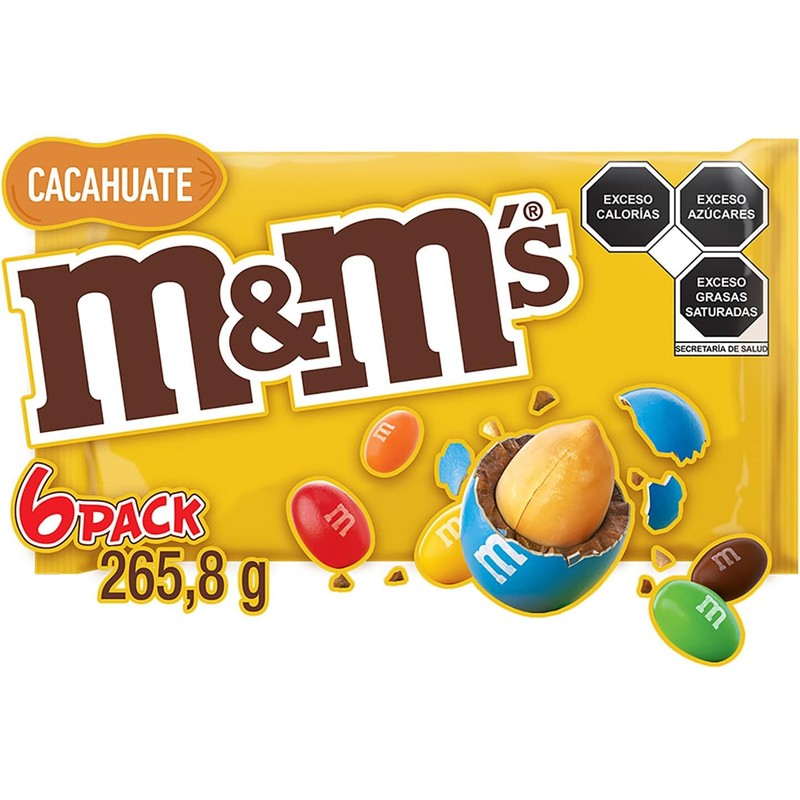 M&Ms 6Pack Chocolate con Cacahuate, 44.3g c/u. 265.8g Total