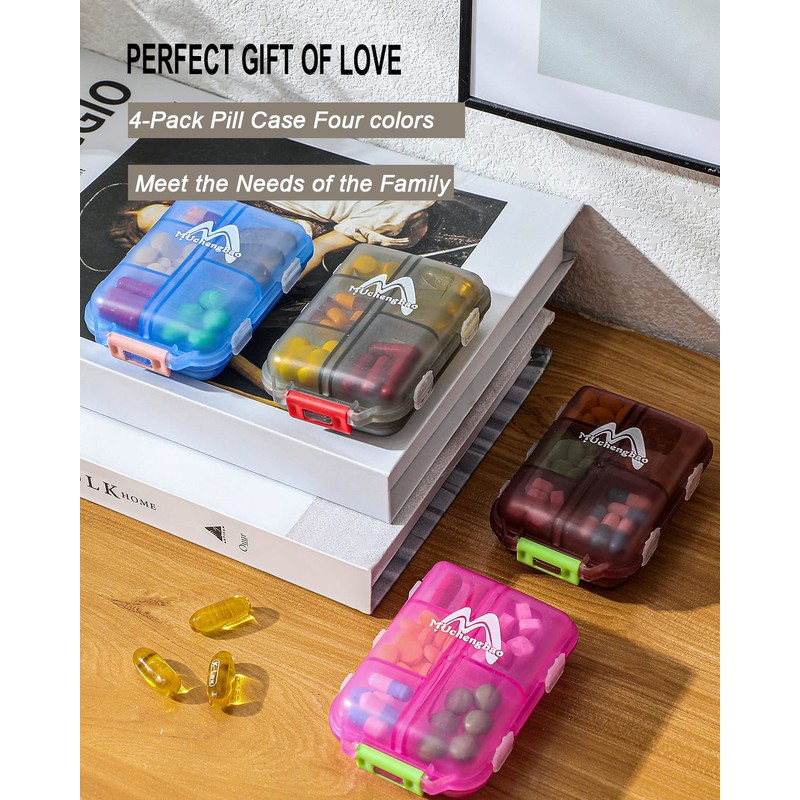 M MUchengbao 4PS Pill Organizer Travel Pill Box,Portable Folding Small Pill Case Daily Pill Box Organizer Pill Container Used for Purse Storage Vitamin Fish Oil Pills Etc Medication Organizer (Red)