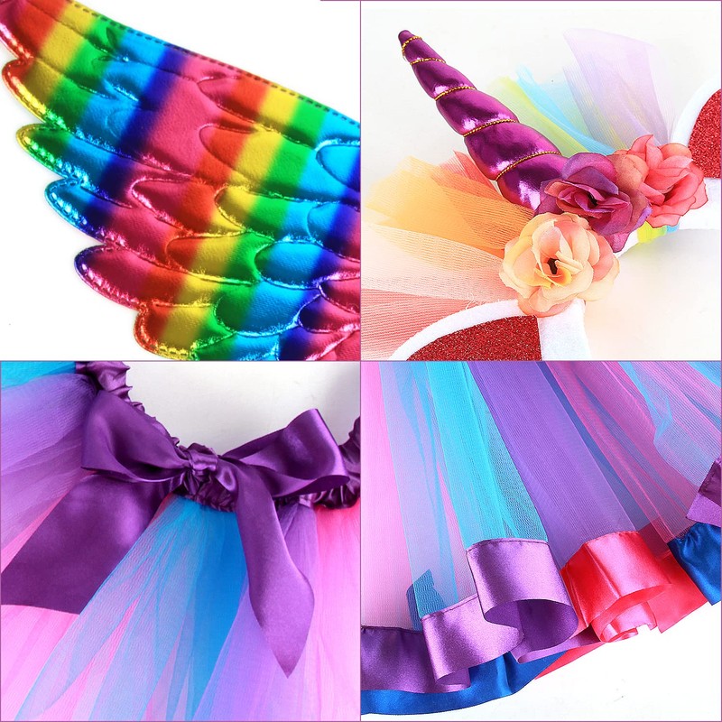 - 【3 in 1 Set】- 3 pieces set children fancy dress costumes includes tutu skirt, angel fairy wings and unicorn headband. Suitable for 3-10 years though the head band may be small for older children. It is ideal gift for any girls and essential item for girls dressing up box.