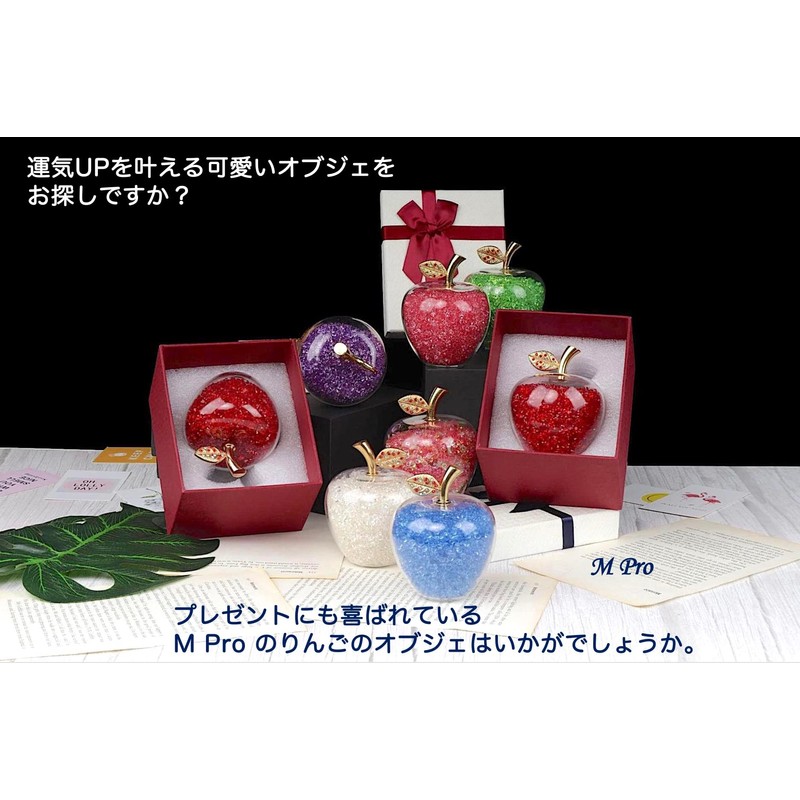 - This apple object is very popular for those looking for a stylish and cute interior accessory. Quality construction makes it a great gift. Recommended for those who want to improve their luck as Feng Shui products. Red for love and affection, pink for beauty luck, purple for money, green for health luck, blue for work luck, white for human luck