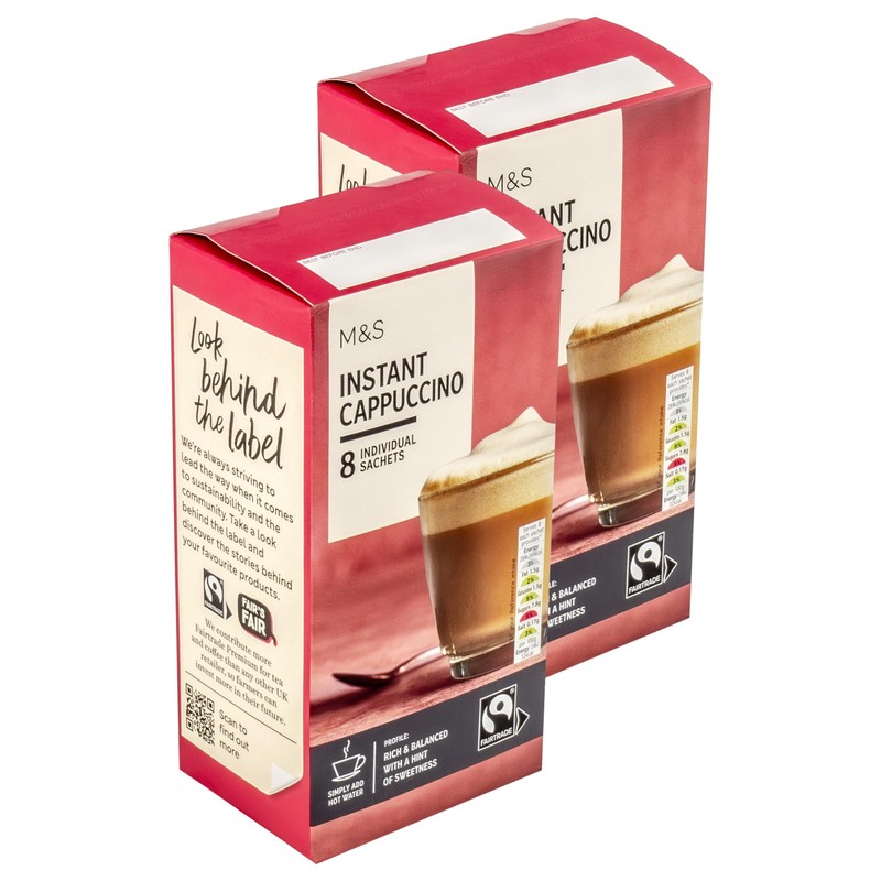 M&S Marks & Spencer 16 x Instant Cappuccino Individual Coffee Sachets, Rich & Balanced - 16 x 15.5g