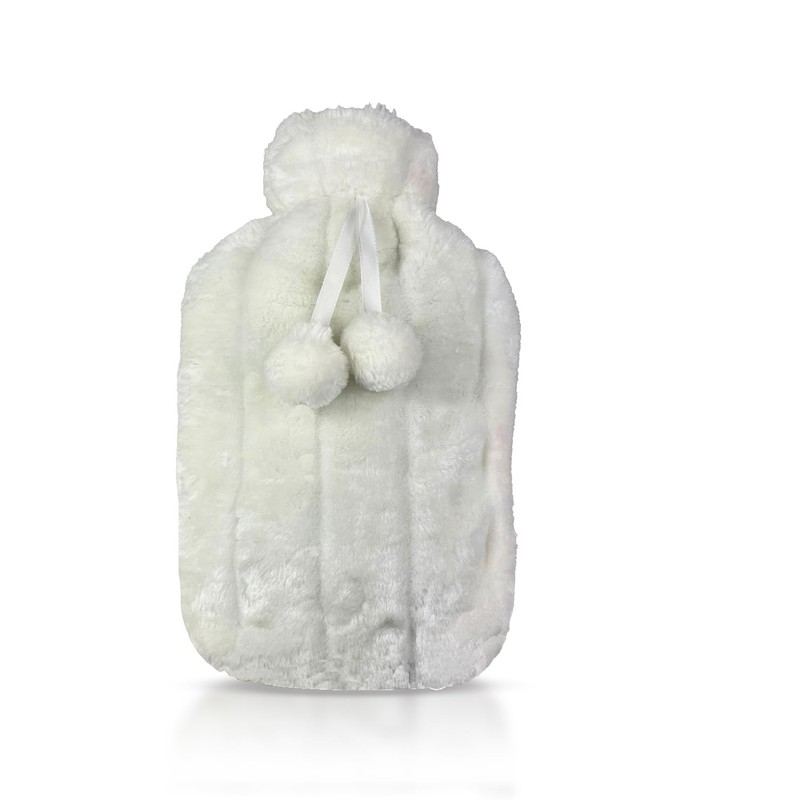 M.S.N Hot Water Bottle 2.0 L with Lid and Cuddly Soft Fur Cover, Kangaroo Pocket - Leak-Proof, Bed Bottle with Soft Removable Cover, Ideal for Pain Relief (Navajo White Gift)