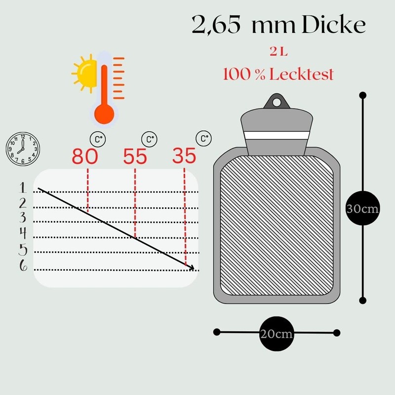 Soft and skin-friendly, effectively extending heat preservation time. 2L large capacity hot water bottle can release heat for a long time. Thanks to the hot water bottle cover of the cuddly hot water bottle, the heat is ideally distributed.