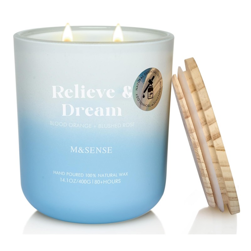 M&SENSE Blood Orange & Blushed Rose Aromatherapy Candle for Stress Relief & Relaxation, 14.1oz 80-Hour Long-Lasting Highly Scented Non Toxic Candle, Natural Soy Wax Spiritual Healing Gift for Women