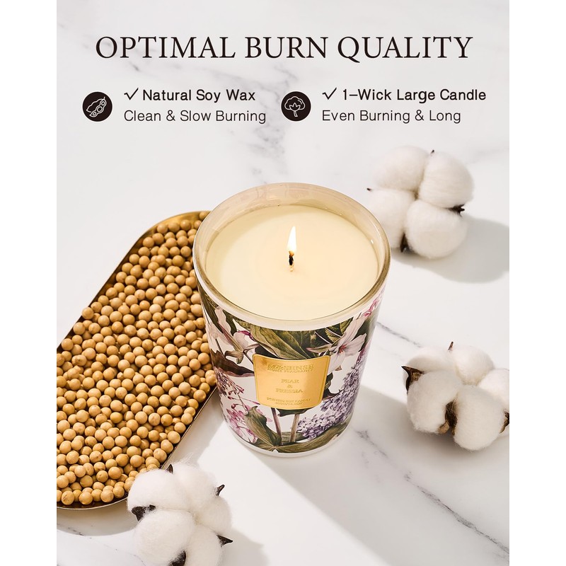 M&SENSE Pear Fressia Scented Natural Soy Wax Candle, 14.1oz 60 Hours Long Lasting Slow Burning Candles for Home Decor, Aromatherapy Candle for Stress Relief