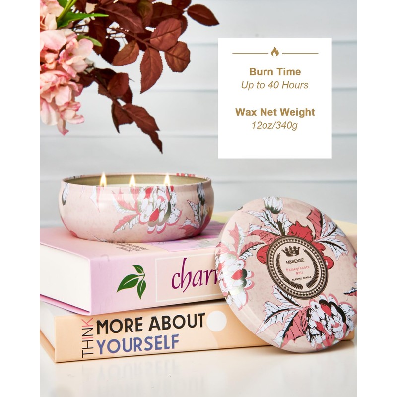 M&SENSE Soy Scented Candles for Home 12oz, 3 Wick Highly Scented 40 Hours Long Lasting, Pomegranate Scented Portable Tin Candles for Travel, Spa, Bath, Yoga