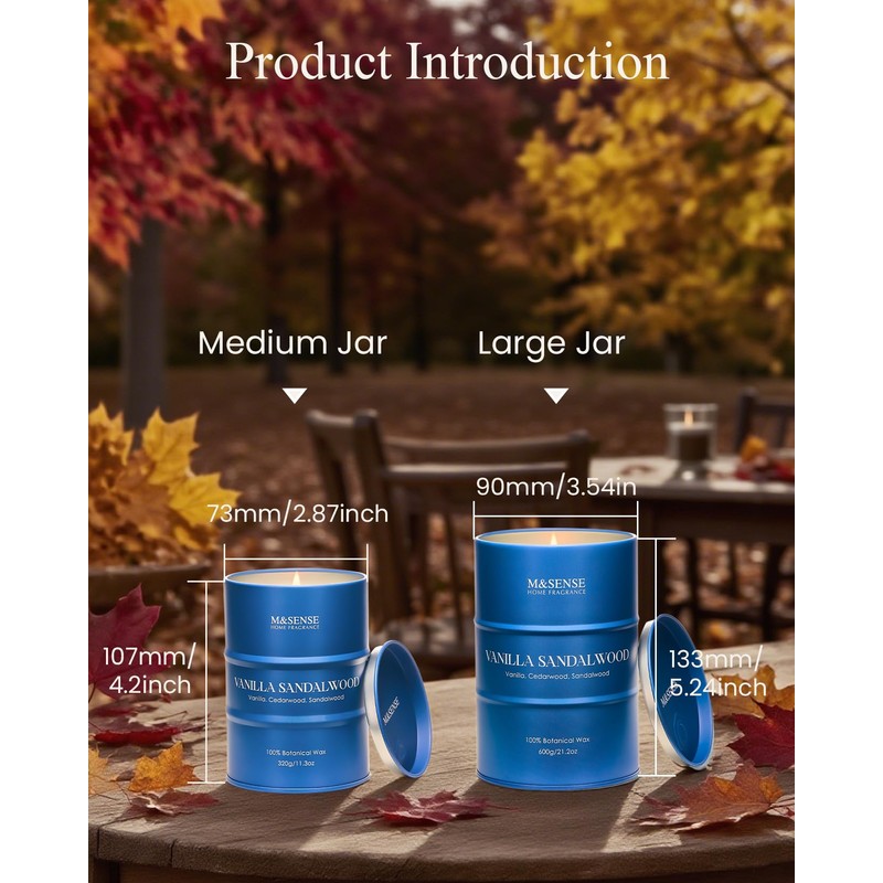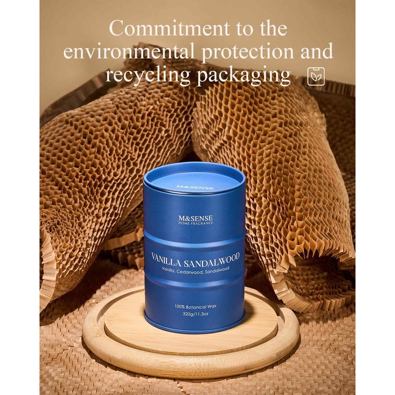 - 💚 Sustainable Material - M&SENSE candles are all crafted with the finest and most natural ingredients. Using high-end vegetable wax and unbleached cotton wicks in a reusable and recyclable tin. Packaged in recycled honeycomb paper and cardboard box for a more sustainable future.