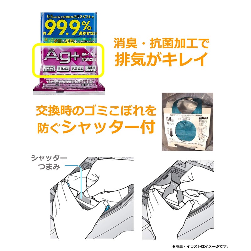 パナソニック 純正品交換用紙パック消臭・抗菌加工「逃がさんパック」(M型Vタイプ) 3枚入り AMC-HC12