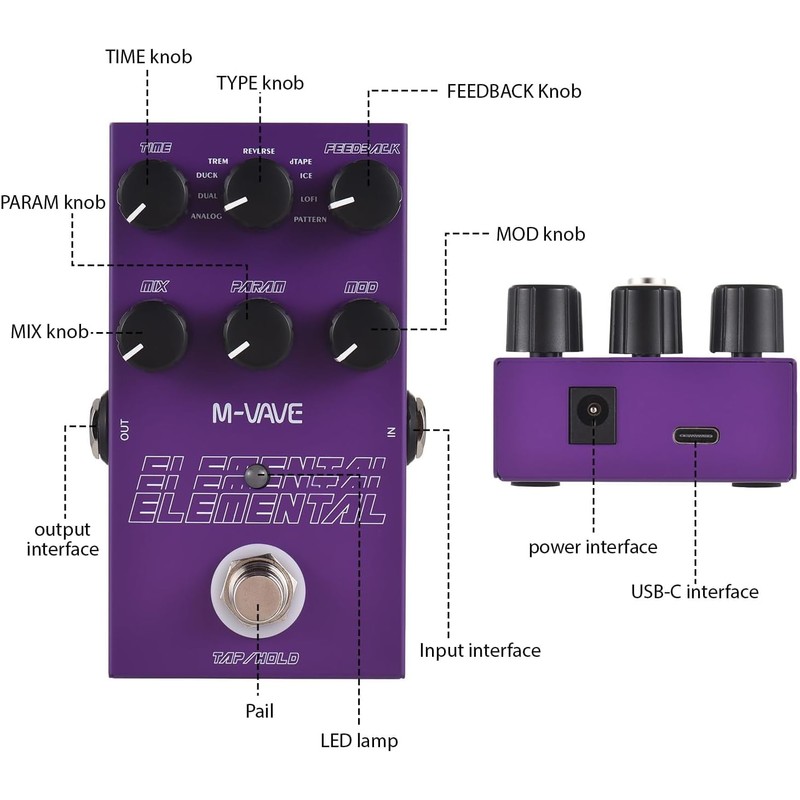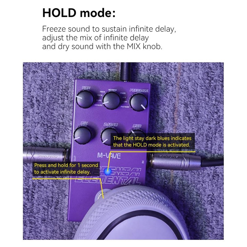 M-vave Elemental digital delay pedal 9 Different Delay Guitar Effects digital delay guitar pedal for TAP and HOLD Mode