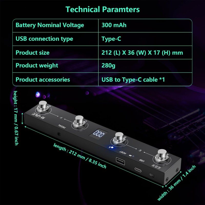 M-VAVE M-VAVE Chocolate Plus Wireless MIDI Foot Controller 4 Buttons BT Recha...