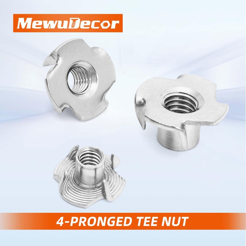 - Tee nuts 4 pronged secure seating design can evenly distribute the torque, provide a large tightening force, ensure the stability of the connector, prevent loosening and falling off, and have a high carrying capacity.
