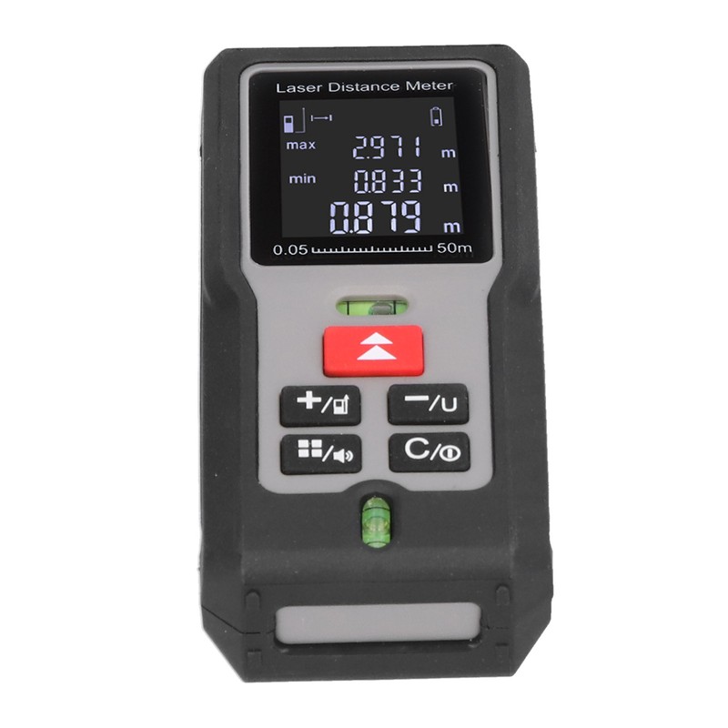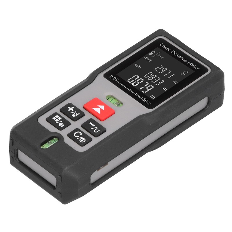 1、The rangefinder kit provides quick, easy and accurate measurement, and one person can complete the work in a few seconds. 2、Suitable for interior finishes, decoration, flooring and wall materials, real estates appraisals and evaluation. 3、Support area, volume, Pythagorean theorem measurement, addition and subtraction, tracking measurement, maximum and minimum. 4、The instrument has double photosensitive apertures, and its stability is significantly improved. 5、The use of high‑quality plastic material, durable, two‑color mold encapsulated plastic shell, feel better.