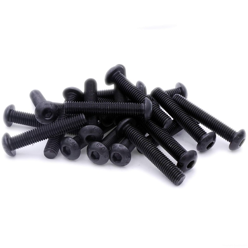 M12 (12mm x 50mm) Hex Socket Button Machine Screw (Bolt) - Black Steel (Pack of 5)