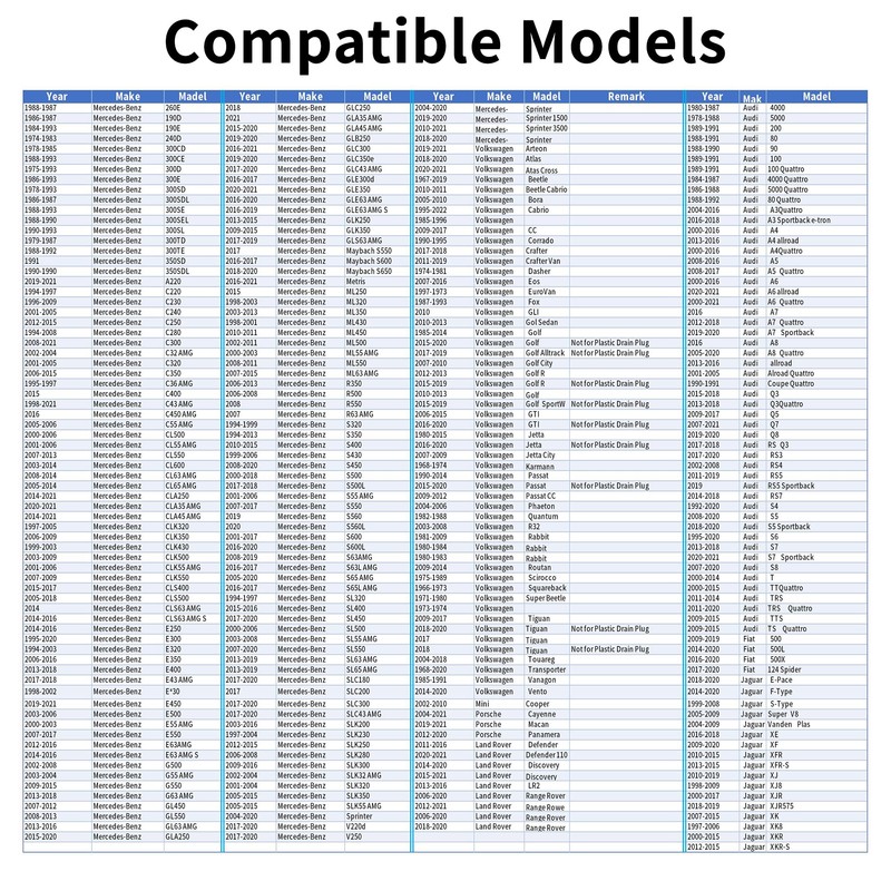 Note: Please measure the thread pitch of the original oil drain plug before purchasing, or check the picture of "Compatible Models" to comfirm if the oil drain plug fits your vehicle.