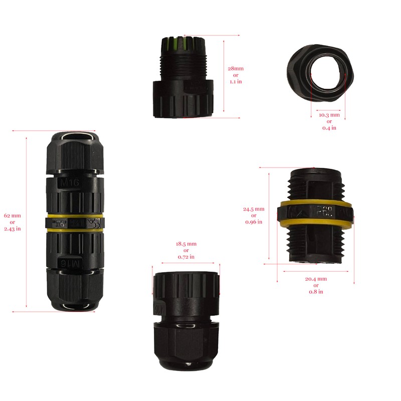 - 【Durable】Waterproof wire connectors made of high quality PA66 nylon, well design and durable in quality. Weatherproof, Moisture-proof, Dust-proof, Waterproof, Explosion-proof, Resist gravity, Anti-UV.